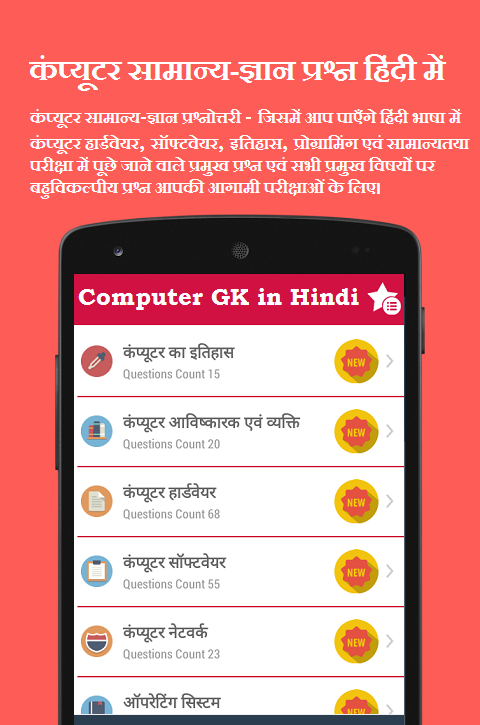 Computer Awareness, Computer GK App with Short Computer Notes, Multiple Choice Questions (MCQs), Old Exam Papers in English and Hindi for competitive examinations.
