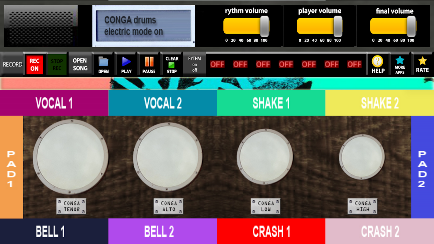 CONGA DRUMS to aplikacja na Androida przeznaczona na telefony i tablety z Androidem. CONGA DRUMS zawiera cztery instrumenty conga. Możesz grać na czterech instrumentach CONGA DRUMS za pomocą czterech wirtualnych klawiatur dźwiękowych.