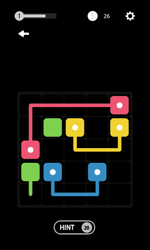 The game presents color link puzzle: each puzzle has a grid of squares with coloured dots occupying some of the squares. The objective is to connect dots of the same colour by drawing 'lines' between them such that the entire grid is occupied by the line. However, pipes should not intersect with each other.