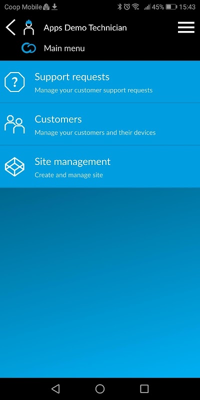 Za pomocą prostego i intuicyjnego interfejsu oraz za pomocą smartfona można konfigurować operatorów, diagnozować i zarządzać dowolnymi sterownikami częstotliwości radiowych i akcesoriami sterującymi swoich klientów.