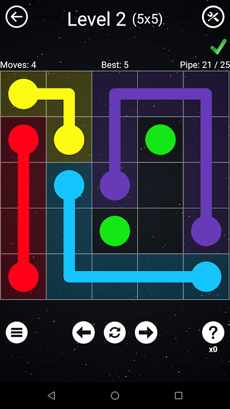 Gra przedstawia łamigłówki Numberlink: każda łamigłówka ma siatkę kwadratów z kolorowymi kropkami zajmującymi niektóre kwadraty. Celem jest połączenie kropek tego samego koloru poprzez narysowanie „rur” między nimi, tak aby cała siatka była zajęta przez rury. Jednak rury nie mogą się przecinać. Trudność zależy od wielkości siatki, od 5x5 do 14x14 kwadratów. Gra zawiera również tryb na czas.