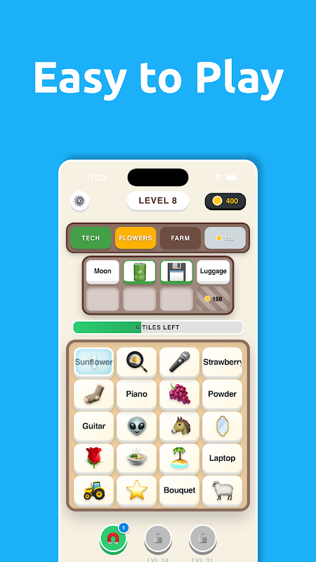 Dotykaj, aby łączyć ze sobą pasujące do siebie słowa — od łatwych tematów, takich jak kolory, zwierzęta i jedzenie, po bardziej wymagające kategorie, takie jak moda, nauka, historia i kosmos. Każdy poziom jest ręcznie zaprojektowany, aby był satysfakcjonujący, skłaniający do refleksji i wystarczająco podchwytliwy, by wciągnąć Cię w wir zabawy.