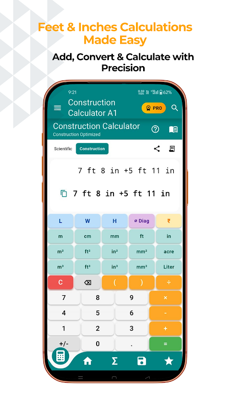 • Faster construction calculations with quick-action buttons in calculator with save share option