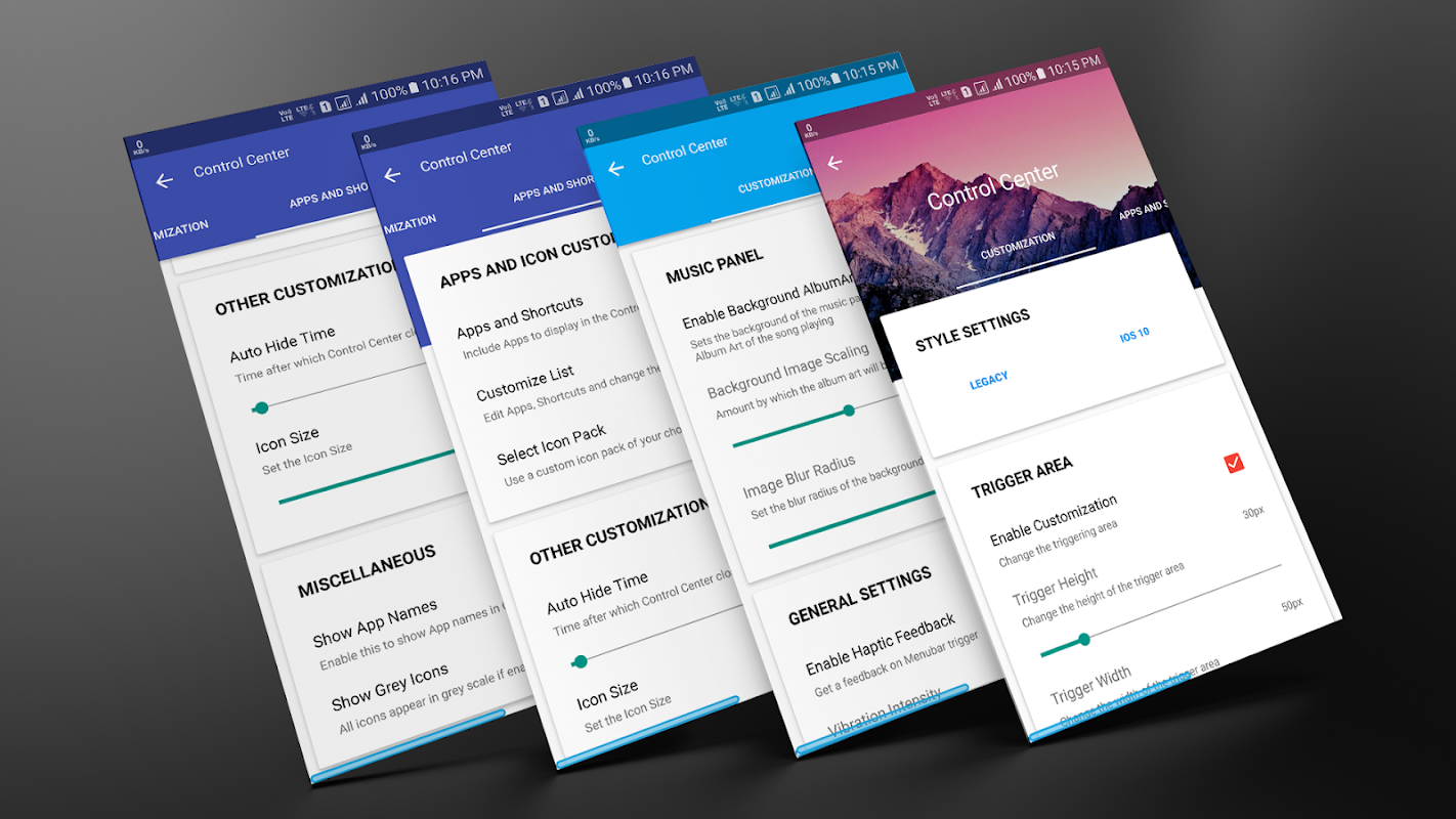 Control Center is a single solution to all your multitasking problems. It is a smart tool that contains your favorite features to be accessed from anywhere anytime. Control Center is inspired by iOS and lets you transform your android device into an iPhone. It brings the best features from iOS - Control Center and Assistive Touch to Android in one package with more customizations than in an iPhone.