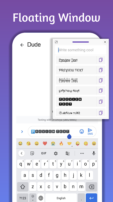 Floating Window: Floating window helps you to use the amazing Stylish Symbols and Stylish Text Fonts, and other Funny Fonts, Cool Text anywhere in the textbox.