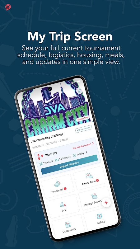 • Jedna aplikacja do wszystkich szczegółów podróży — mecze, lokalizacje, hotele, posiłki, transport
