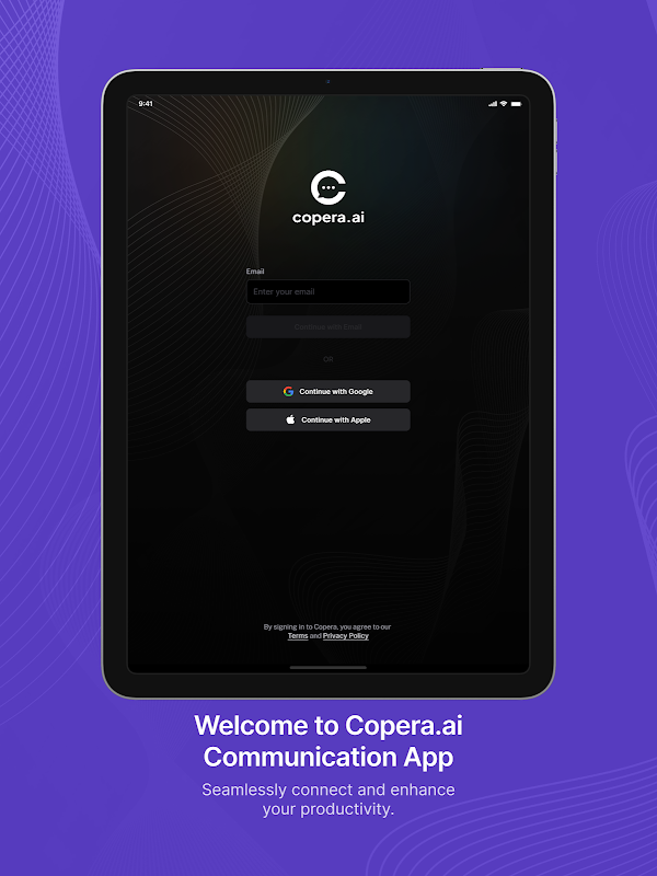 Copera Chat to aplikacja, z której możesz korzystać, zapewniając płynną komunikację i współpracę w zespole. Zintegrowany z Twoim istniejącym kontem Copera, pozwala zalogować się za pomocą Google lub poczty e-mail i uzyskać dostęp do wszystkich kanałów komunikacji w jednym miejscu.