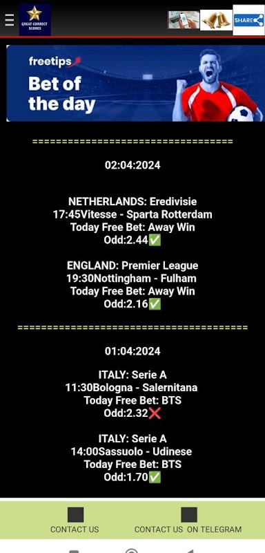 Correct Scores Palace codziennie zapewnia użytkownikom pewne przewidywania dotyczące losowych meczów piłki nożnej.