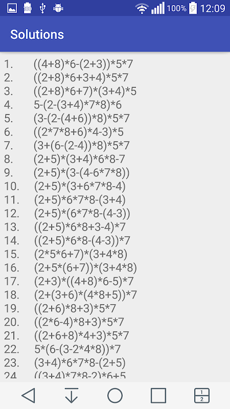 Aplikacja wygląda tylko do roztworów całkowite lecz do pośredniego punktu w roztworze może być prawdziwe, przykład aplikacja znajdzie (7/2 + 10) * 6 = 81.