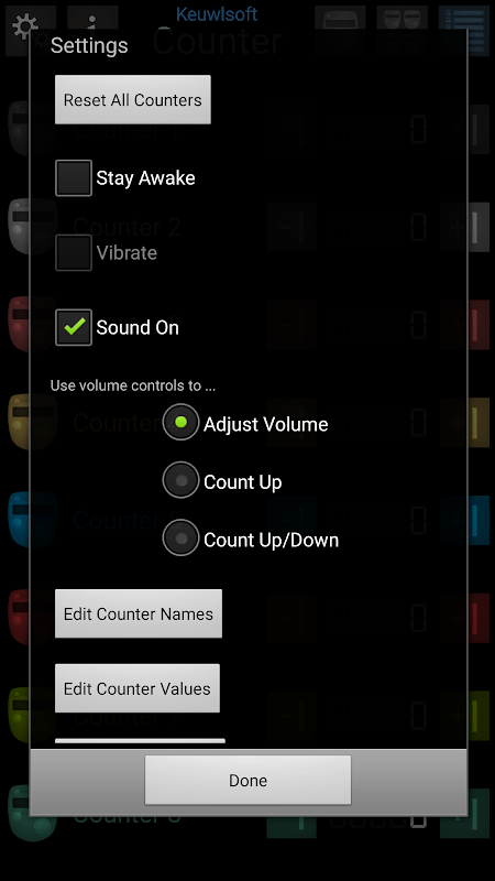 • Licznik preferencji i wartości przechowywanych przy następnym uruchomieniu aplikacji.