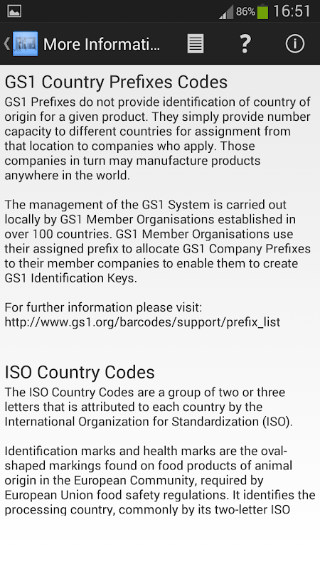 So, with this app you can know the correspondent country of a GS1 code, ISO code or phone code. Simply type the first three digits of the bar code (the GS1 code) or the ISO code in the search bar and press Search! To know the correspondent country of a phone code, type it on the second search bar and press Search! You can also type a country on the first search bar to know all its codes.