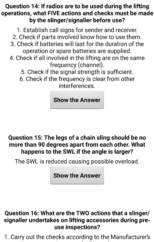 Aplikacja zawiera wszystkie 85 odpowiedzi do testu ustnego CPCS A40 Slinger Signaller.