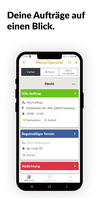 Wasze narzędzie do planowania zleceń, dokumentowania pracy i rozliczania czasu – zaprojektowane z myślą o rzemieślnikach.