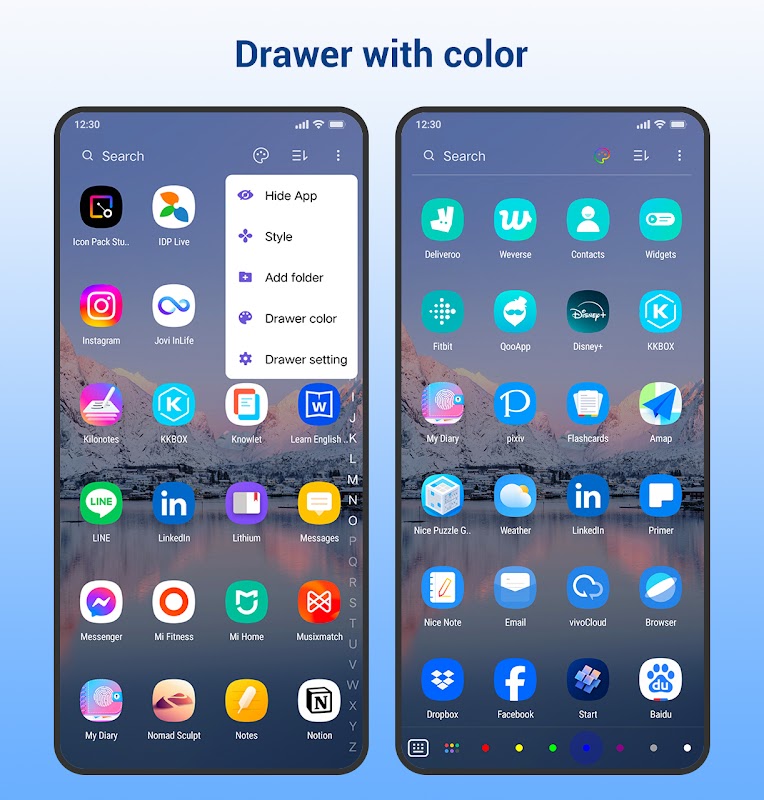 Creative Launcher ❤️ to wyjątkowy program uruchamiający z innowacyjnymi funkcjami, jego szuflada wyposażona jest w inteligentną klawiaturę A-Z, która pomaga bardzo szybko znajdować i otwierać aplikacje, jest to szybki i inteligentny program uruchamiający, ma również wiele funkcji uruchamiania, takich jak inne normalne programy uruchamiające.