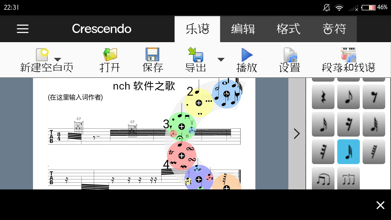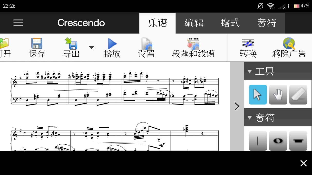 • Edytuj nuty za pomocą symboli, takich jak półtonów, półtonów, znaków diakrytycznych, legato i melodii