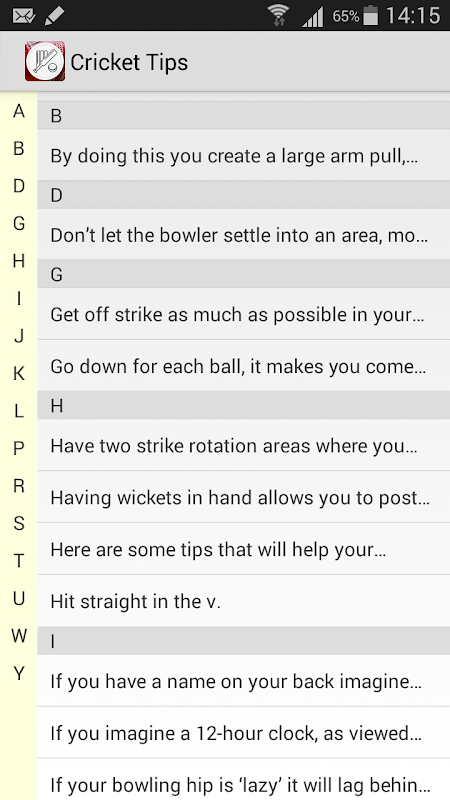 Looking for the Cricket Tips? This app is for you! That is very easy and fast application with big collection of Cricket Tips.