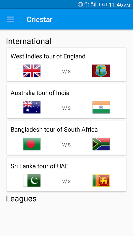 - Series - Complete information of ongoing series: Fixtures, Squads, Stats