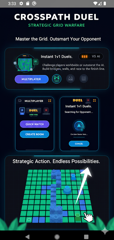 Jesteś gotowy przechytrzyć przeciwnika? CrossPath to konkurencyjna gra strategiczna 1 na 1, która łączy klasyczne mechaniki gier planszowych z dynamiczną akcją mobilną.