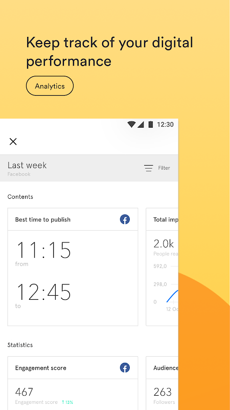 Access a world of features such as multibrand connection | advice & analytics | campaigns | social publisher with best time to post | reports | web and social trends