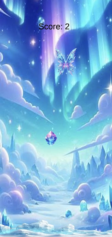Przenieś się w magiczne, mroźne niebo w grze Crystal Sky Glide, w której poprowadzisz lśniącego motyla przez fale unoszącego się kryształowego nektaru.