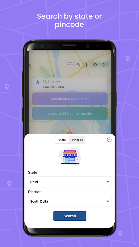 Możesz wyszukiwać pobliskie centra CSC według stanu, dystryktu i kodu PIN.