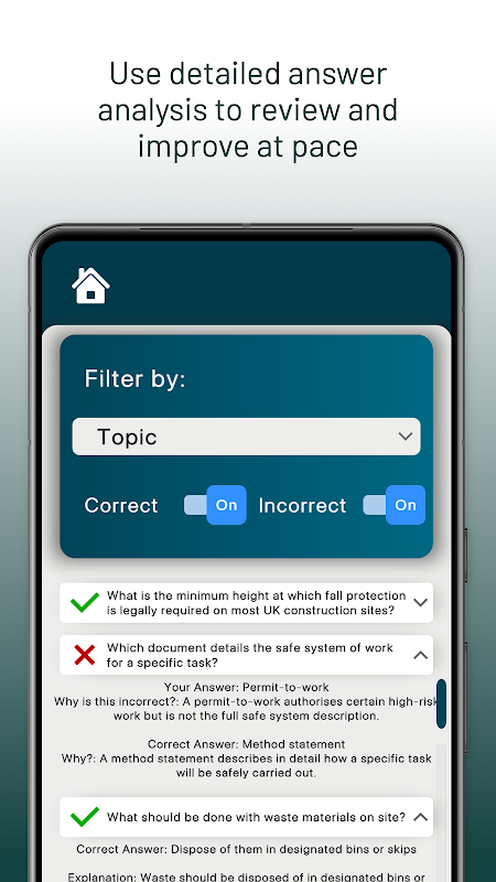 • Gwarancja zdania – Regularne korzystanie z aplikacji przygotuje Cię do zdania egzaminu na zieloną kartę CSCS za pierwszym podejściem.