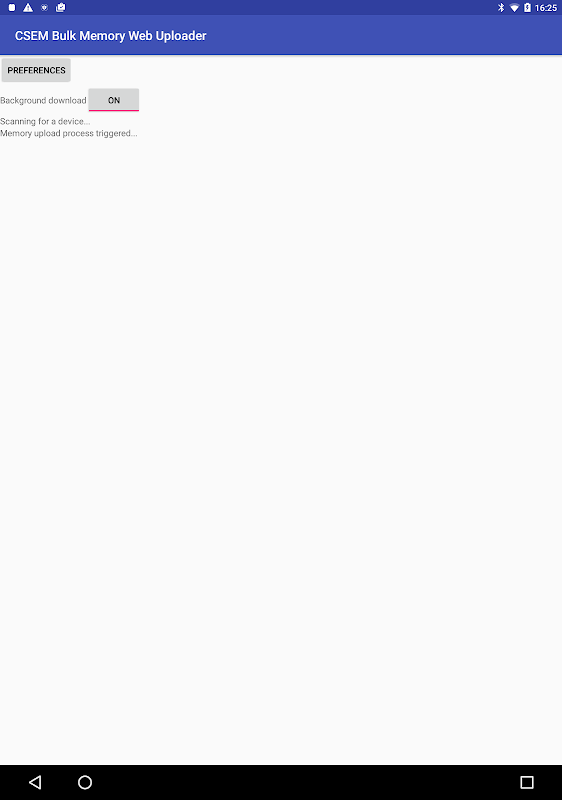 The application runs as a service to regularly check if a type of Bluetooth Smart device is in the vicinity and verifies if data has to be download and send it to a web-server.