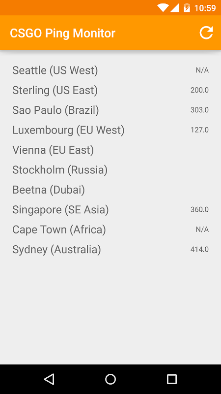 This application allows you to check ping to Valve's servers. These servers are used by CSGO, Dota 2 and Team Fortress 2.