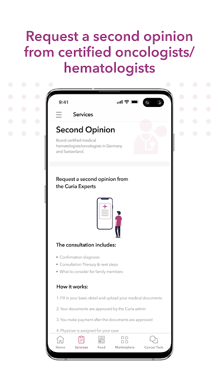 Curia to aplikacja dla pacjentów z rakiem, która ma na celu dostarczenie Ci informacji, które pomogą Ci nawigować w Twojej podróży z rakiem. Aplikacja dostarcza dokładnych i aktualnych informacji na temat terapii, badań klinicznych i ekspertów, na podstawie Twojego profilu raka i danych wprowadzonych do aplikacji. Ma on na celu umożliwienie Ci obrony własnego zdrowia i prowadzenie bardziej świadomych rozmów z lekarzem.