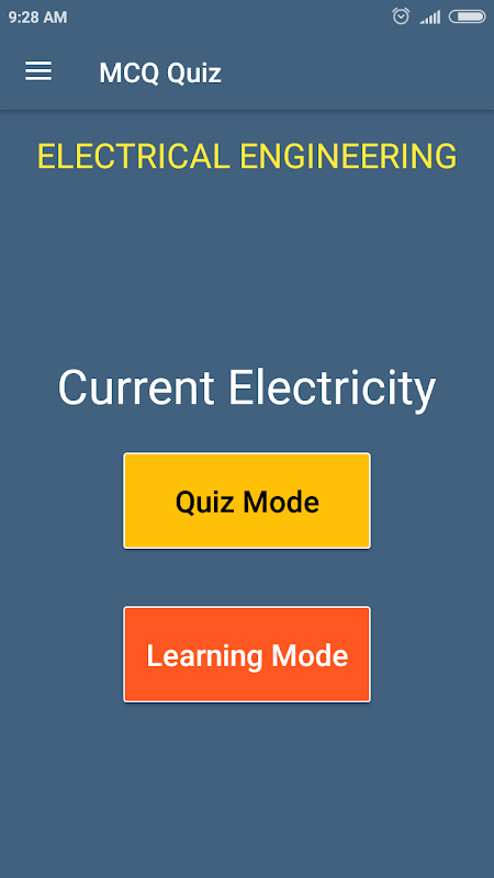 Aplikacja MCQ Quiz Android dla przedmiotu Aktualny elektrycznej.