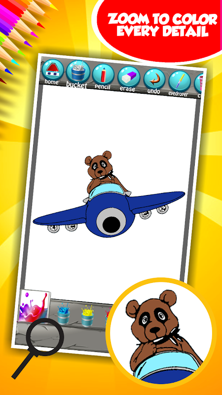 Rysunek najpiękniejszej pandy prowadzącej najfajniejszy śmigłowiec oddycha. Wybierz to zdjęcie, a jeśli chcesz ozdobić nawet najmniejsze szczegóły, kliknij ikonę ręki. Następnie możesz go powiększać lub pomniejszać, aby stworzyć najlepsze zdjęcie. Zbadaj wiele kombinacji kolorów w palecie farb, podczas gdy w tle słuchasz popularnej muzyki. To zrelaksuje Cię wspaniale. Z góry cute ładowanie kolorowanka można zapisać obraz w galerii po jego zakończeniu. Tam możesz przeglądać i podziwiać, ilekroć zechcesz. Możesz też ustawić go jako tapetę w smartfonie i będzie świetnie wyglądać na ekranie. Wybierz ilustrację najsłodszego stworzenia trzymającego kosz z jagodami i jedzenia ich. Woda płynie do ust, ponieważ są ulubionymi owocami. Pobierz za darmo najnowsze książki o kolorze ślicznej urodzie i wyrazić swoją kreatywność w najlepszy możliwy sposób z zaskakującymi rysunkami.