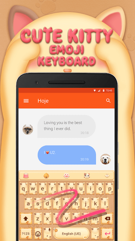 With a help of ♥Cute Kitty Emoji Keyboard Theme ♥ you can dress up your device with numerous elegant themes.Our theme is designed to change the appearance of your keyboard in a fashionable and beautiful way. It can be used to type on SMS, Facebook, Twitter, Instagram, Messenger, Gmail, WhatsApp and any other social apps directly from this emoji app.