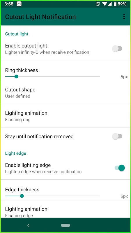Cutout Light Notification add lighting cutout and also lighting edges whenever your phone receive notifications.