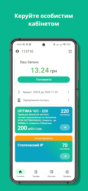 - Зміна тарифного плану Internet