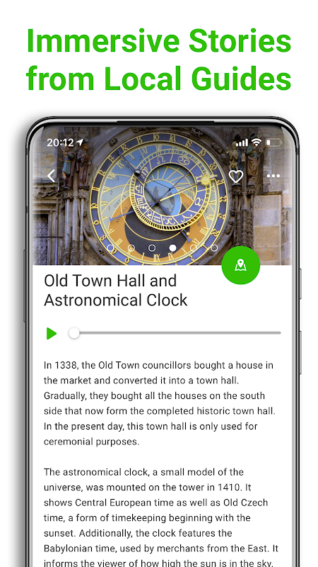 Dogodnie słuchaj audioprzewodnika z ciekawymi narracjami lokalnych przewodników, które odtwarzają się automatycznie po osiągnięciu interesującego widoku. Po prostu pozwól, aby telefon do ciebie mówił i ciesz się scenerią! Jeśli wolisz czytać, na ekranie znajdziesz również wszystkie transkrypcje.