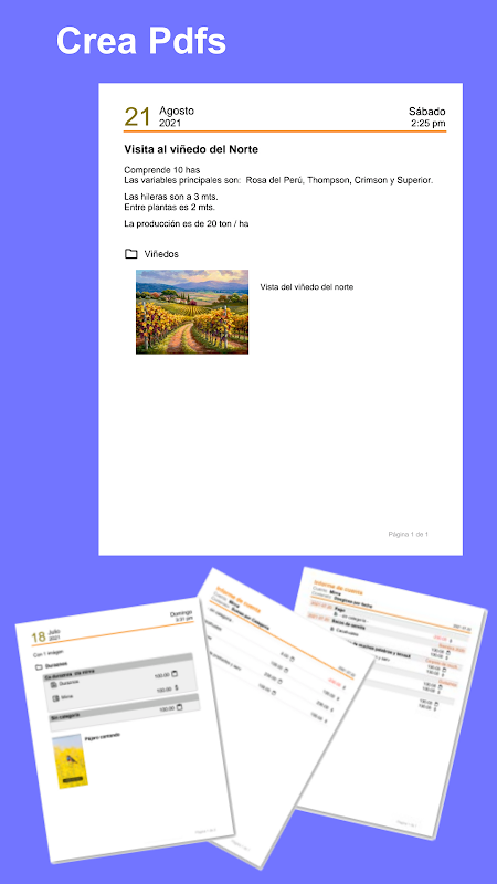 Crea Pdfs de cada carpeta, con sus notas, imágenes y datos numéricos.