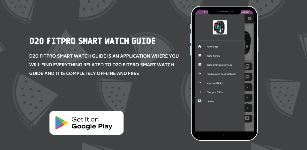 Niniejsza instrukcja obsługi smartwatcha d20 fitpro zawiera informacje na temat korzystania ze smartwatcha d20 fitpro. Wielu właścicieli inteligentnych zegarków d20 fitpro może mieć pytania lub problemy z użytkowaniem inteligentnego zegarka d20 fitpro.