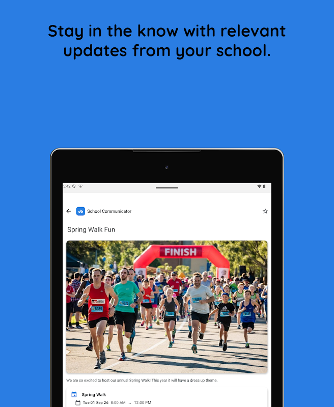 d6 School Communicator to samodzielna aplikacja zaprojektowana w celu uproszczenia komunikacji między szkołą a rodzicami. Komunikator szkolny d6 zawiera wszystkie informacje, których zaangażowany rodzic potrzebuje za naciśnięciem jednego przycisku. Możesz spersonalizować informacje, które chcesz otrzymywać, podając najnowsze informacje, które są dla Ciebie istotne.