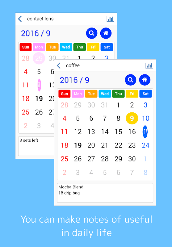 - Łatwa kontrola z kalendarza.