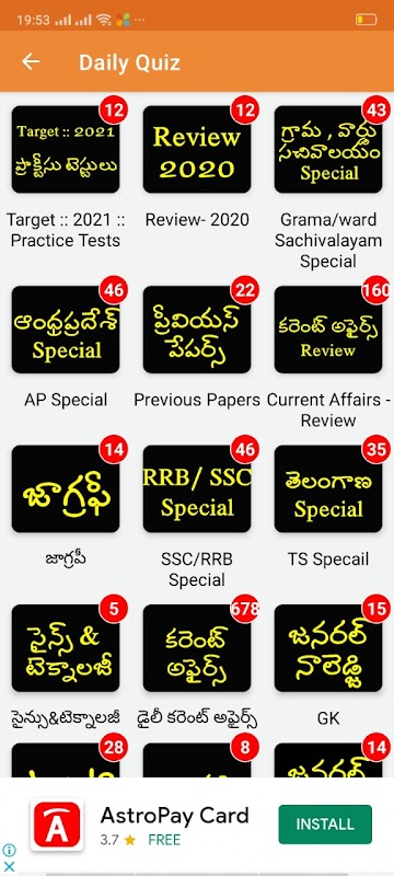 Codzienne GK w telugu APP zapewnia codzienne aktualizacje dla każdej kategorii - krajowe, międzynarodowe, Andhra Pradesh, Telangana, ekonomia, nauka i technologia, nagrody, osoby i sport. Jest to bardzo przydatne dla studentów przygotowujących egzaminy konkurencyjne prowadzone przez APPSC, TSPSC, SSC, RRB, APSLRPB, TPSLPB, DSC itp.