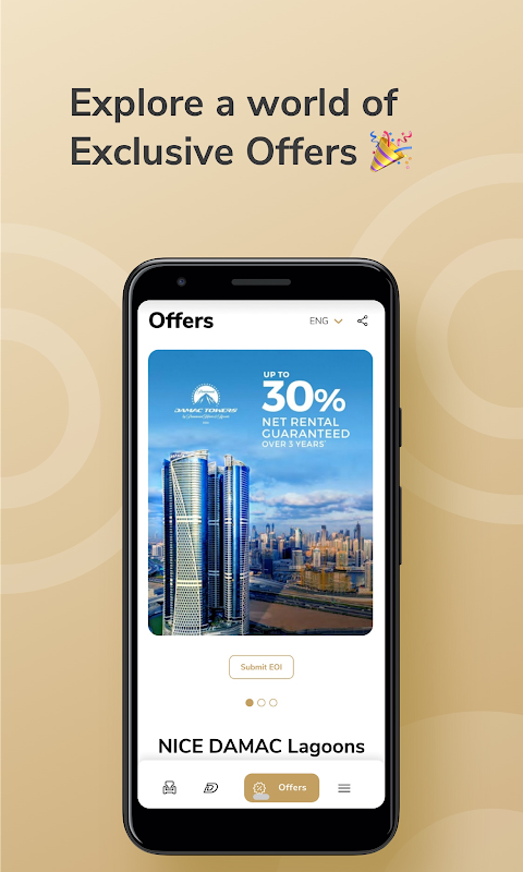 Aplikacja DAMAC 360 to doskonała platforma dla pośredników w obrocie nieruchomościami, która pozwala sprawdzić wszystkie szczegóły nieruchomości, w tym jej wielkość, lokalizację, standard i dodatkowe funkcje, bezpośrednio na ogłoszeniu i porównać oferty. Aplikacja DAMAC 360 daje Ci wszystkie niezbędne informacje na wyciągnięcie ręki.