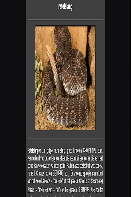Aplikacja ta zawiera informacje na temat niebezpiecznych węży