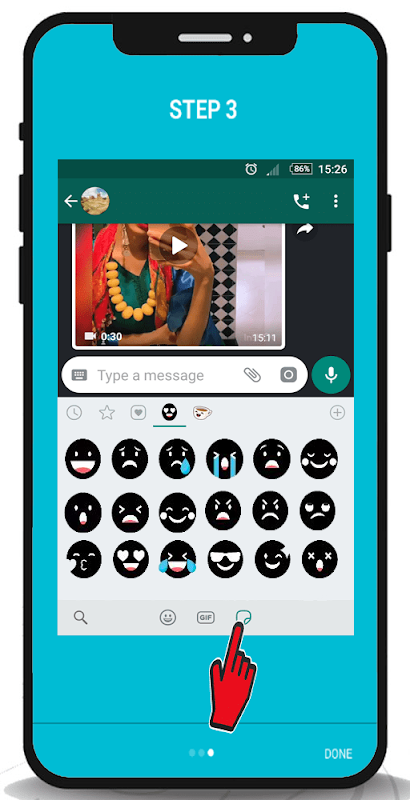 - You will see a new sticker icon at the bottom and can now use this sticker pack