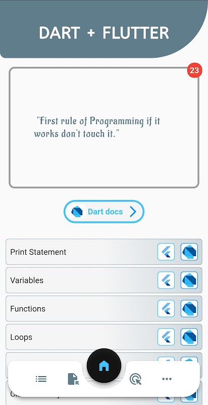 W „Dart with Flutter”, naszej flagowej aplikacji, zagłębiamy się w podstawowe komponenty Darta. Dokładnie badamy zmienne, funkcje, klasy i nie tylko. Oprócz teorii przedstawiamy przykłady Fluttera z życia wzięte, aby zilustrować, jak te komponenty są wykorzystywane w praktyce. Zrozumienie „jak” jest równie istotne, jak wiedza „co” i to nas wyróżnia.