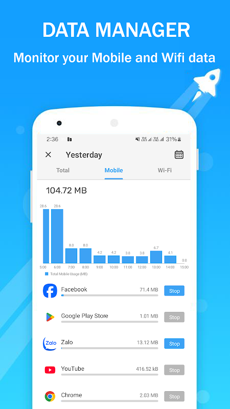 Natychmiast sprawdź, które aplikacje zużywają najwięcej danych i poznaj swoje obecne zużycie. Pobierz aplikację Data Manager już teraz i przekonaj się, jak bardzo się różni.