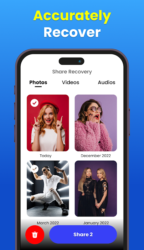 Teraz odzyskaj wszystkie swoje multimedia, w tym przywracanie zdjęć i filmów za pomocą aplikacji do odzyskiwania plików. Odzyskiwanie danych jest teraz jednym dotknięciem, aby uzyskać kopię zapasową wideo. Odzyskaj usunięte dane i pliki, w tym usunięte zdjęcia i filmy, w tej aplikacji do przywracania i odzyskiwania.