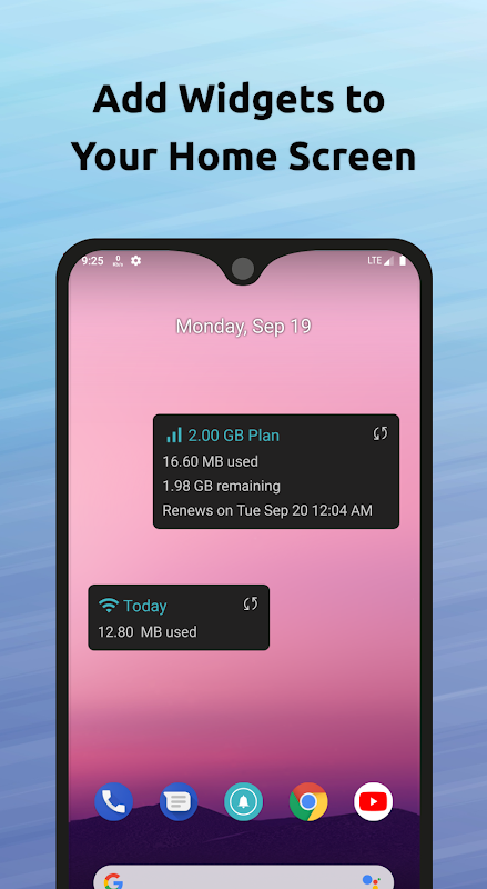 Możesz dodać widżet do ekranu głównego, aby zobaczyć wykorzystanie Internetu w podróży. Możesz dostosować widżet, aby pokazywał wykorzystanie urządzeń mobilnych, Wi-Fi i roamingu. Pokazuje również szczegóły planu.