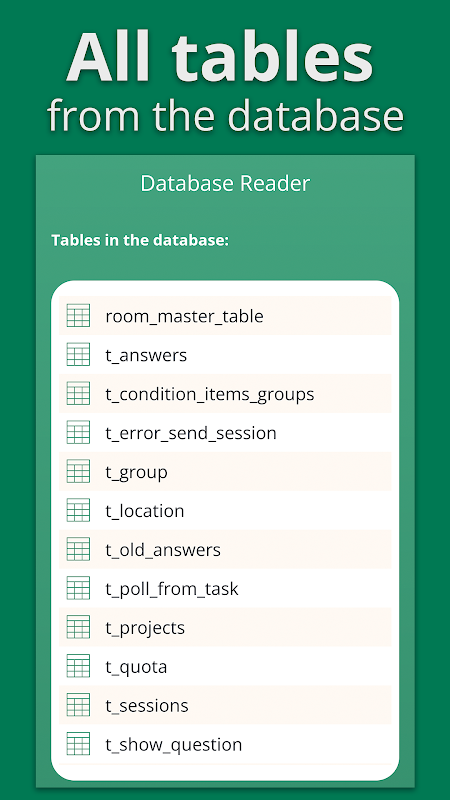 Ta aplikacja pozwoli Ci przeglądać dane z bazy SQLite na Twoim urządzeniu.