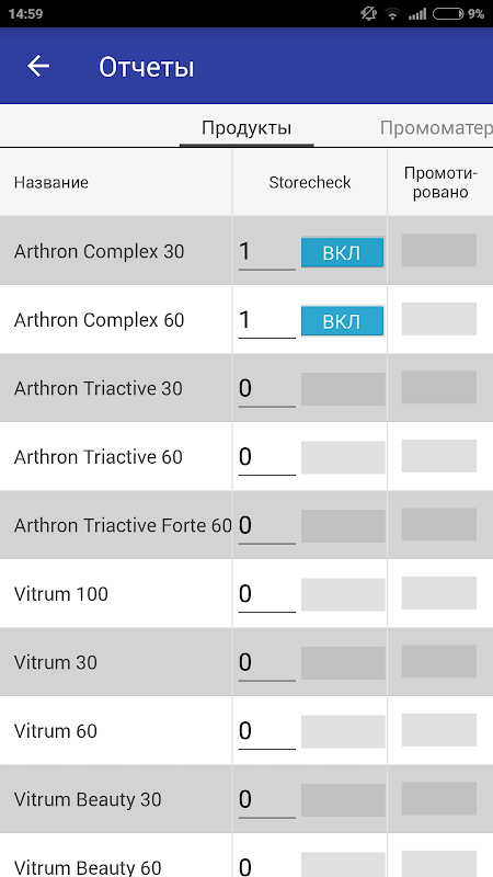 По каждой задаче есть возможность формирования детального отчета - промотируемые продукты, розданные промо материалы и тд
