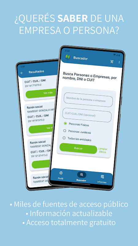 Wyszukaj osoby i firmy w Argentynie według nazwy, DNI, CUIT lub CUIL.